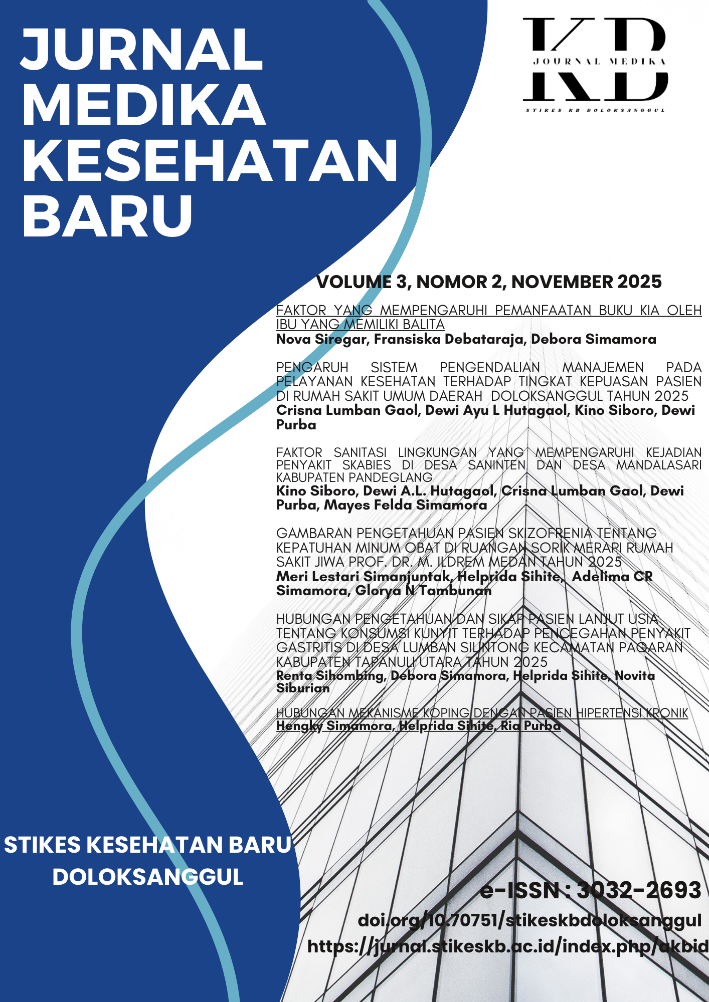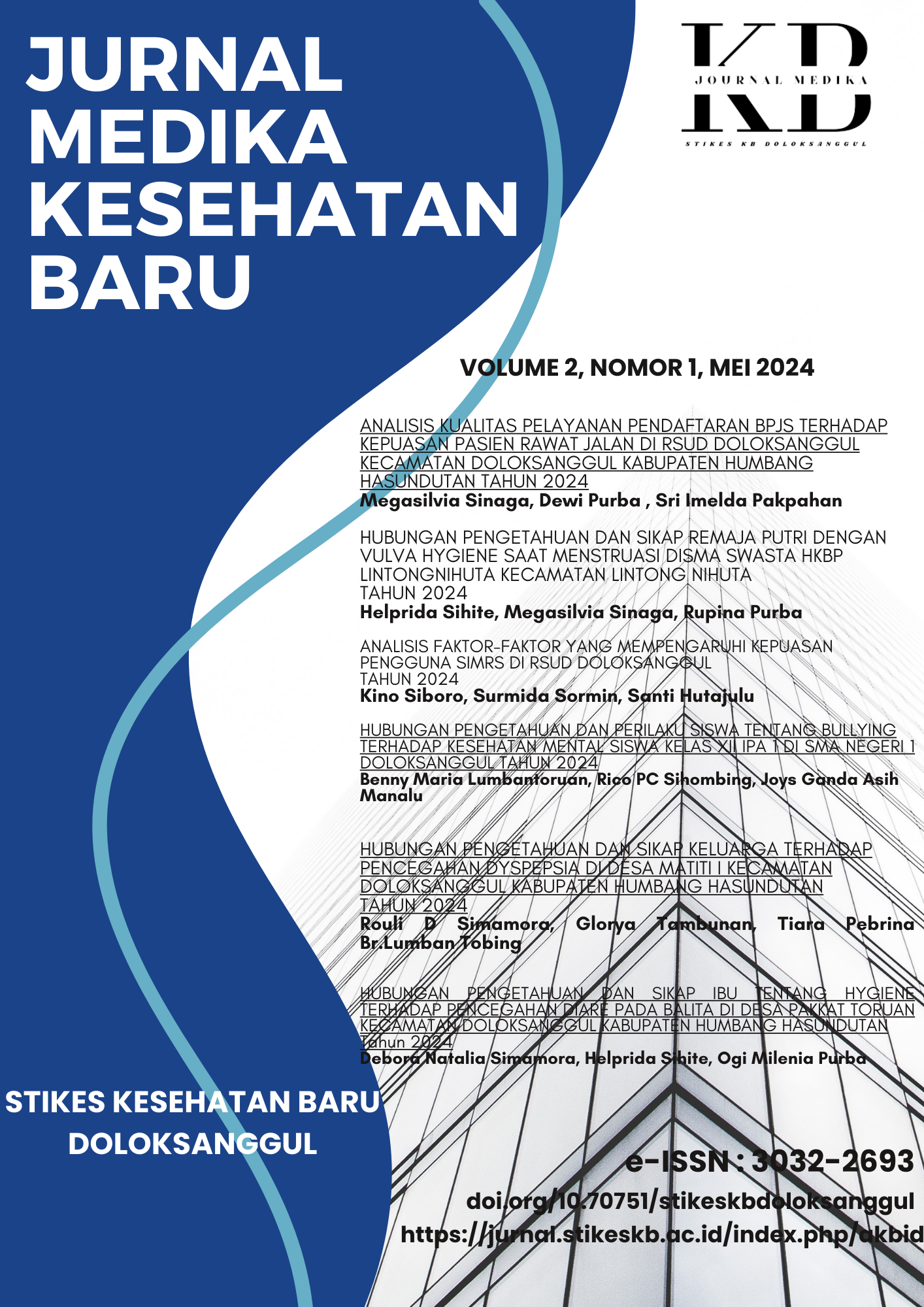 Jurnal Medika Kesehatan Baru Merupakan jurnal yang membahas berbagai aspek dalam dunia kebidanan, keperawatan dan manajemen rumah sakit. Jurnal ini mencakup topik-topik seperti praktik keperawatan terkini, inovasi dalam kebidanan, manajemen administrasi rumah sakit, penelitian klinis, pengembangan kebijakan kesehatan dan isu-isu terkait pelayanan kesehatan. Jurnal ini terbit bulan Mei dan November. Jurnal Medika Kesehatan Baru telah memiliki ISSN dengan Nomor ISSN: 3032-2693 (Elektronik).